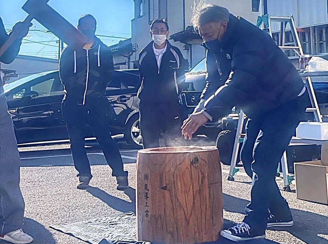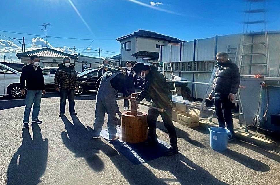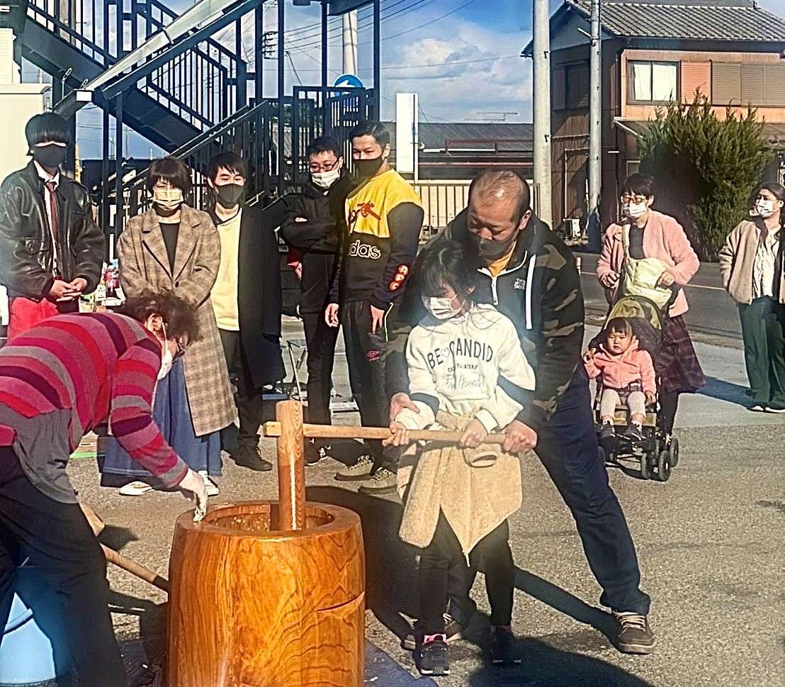 社員さんとその家族を招き、みんなで力を合わせてぺったんぺったん。
